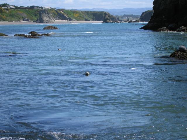Weiter gings zum Wildlife Viewing ans Simpson Reef&Shell Island beim Cape Arago SP. Hier waren sehr nette Volounteers die klasse Ferngläser hatten mit denen wir die California Sealions, Stellar Sealions, und Northern Elephant Seals sehr gut sehen und beim tollen im Wasser beobachten konnten.