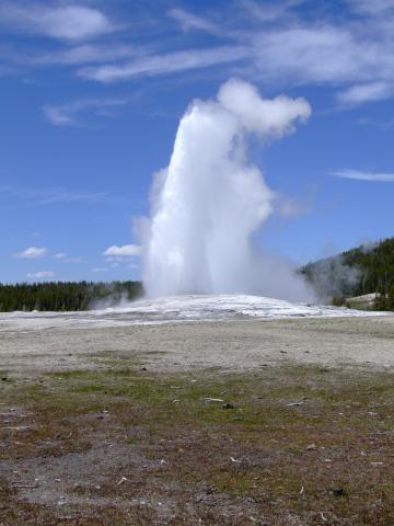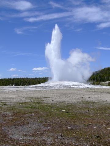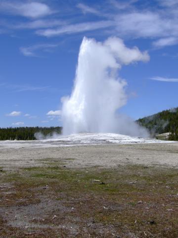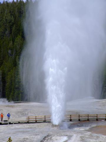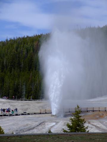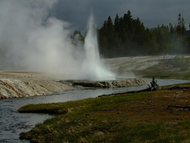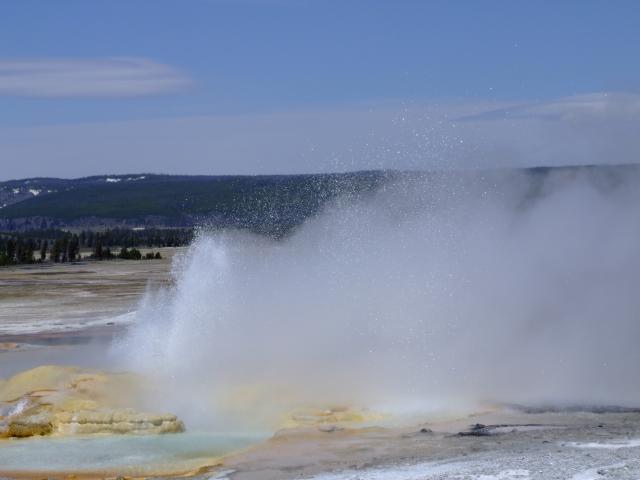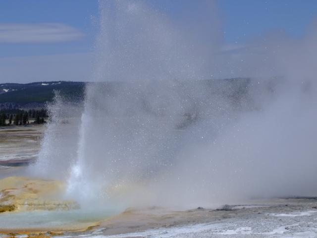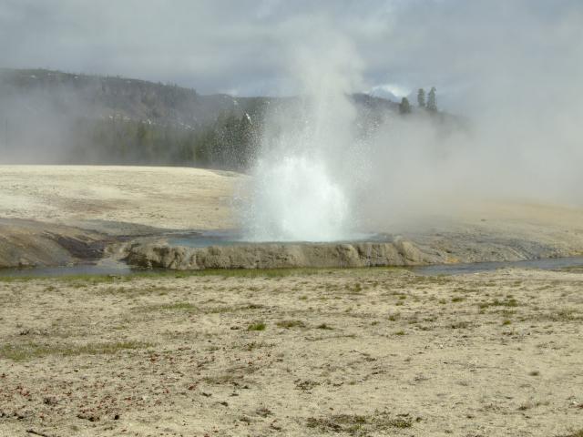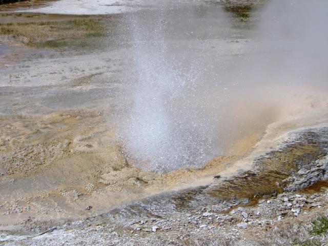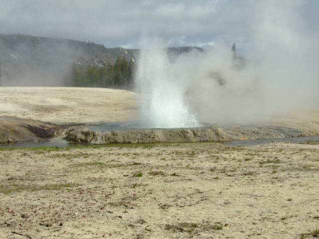Dann gabs einen Besuch im Visitorcenter um die voraussichtlichen Ausbruchzeiten einzuholen und dann gings in die alte Lodge wo wir uns einen Kaffee bzw. Latte holten bevor wir uns auf den Rundweg machten. Als wir unseren Kaffee gerade draussen tranken brach der Bieheeve Geyser in voller Pracht aus, was sehr unregelmäßig der Fall ist, dafür aber um so schöner.