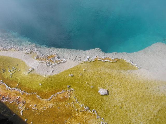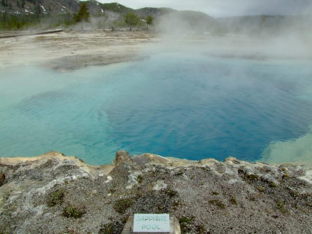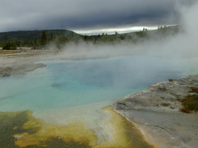 Hierbei gabs einen Stop beim Biscuit Basin um den Saphire Pool anzusehen,leider ohne Sonne.