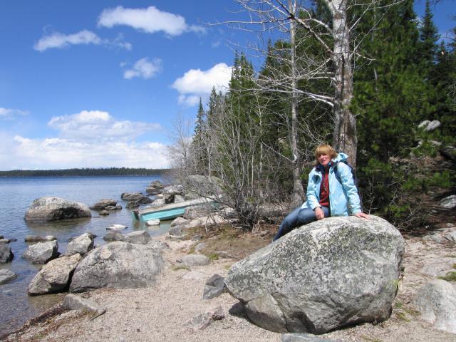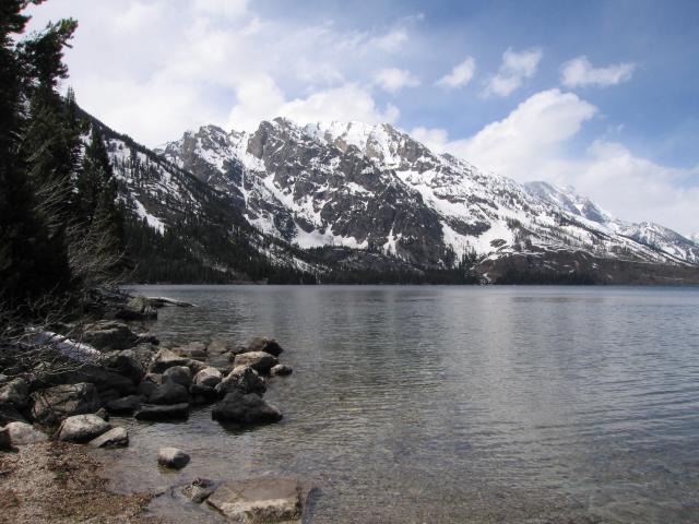 Nach der ausgiebigen Pause machten wir uns auf den Weg zu einer Rundfahrt durch den Park. Erster Stop war beim Jenny Lake dort holten wir im General Store Milch und Brot fürs morgige Frühstück. Anschl. liefen wir zum See um evtl. die Bootstour zum Inspirations Point und den Hidden Falls zu machen. Leider waren die Wege dorthin aber noch verschneit und so verzichteten wir auch auf die Bootstour da damit wenig sinnvoll. Stattdessen liefen wir ein Stück um den See.