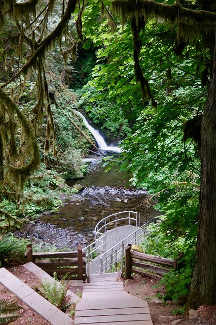 Der Morgen des Tag 18 beginnt wie vorhergesagt mit trüben Wolken aber trocken, so daß wir es uns verkneifen, noch einmal nach Victoria zu fahren, eigentlich haben wir die Zeit gestern gut genutzt und alles Wichtige gesehen. Also wandern : Zunächst gehen wir zum Warmlaufen zum nahen Goldstream Falls Wasserfall, der Trail beginnt direkt neben unserem Stellplatz. Ein gemütlicher, kleiner aber hübscher Wasserfall, von dem wir dann bald wieder zurück sind.