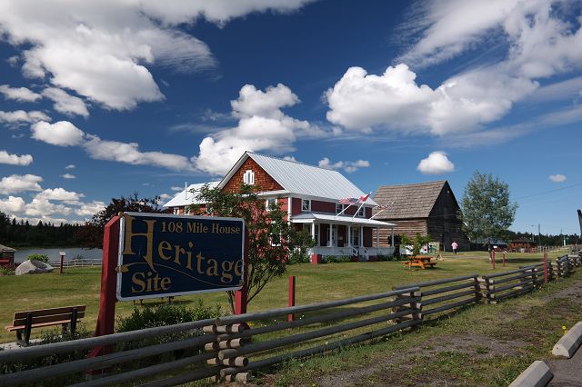 Dann geht es los und nach kurzer Fahrt halten am beim kleinen Museum des 108 Miles House Ranch an. Hier bekommen wir auch ohne einen Anfahrt von 170 km (wie ursprünglich geplant nach Barkerville) ein Ensemble von alten Häusern von 1892 zu sehen – in toller Lage über dem See. Die Ortschaft 100 Ml House steuern wir als nächstes an, hier besuchen wir den Centennial Park mit einem Wasserfall direkt im Ort.