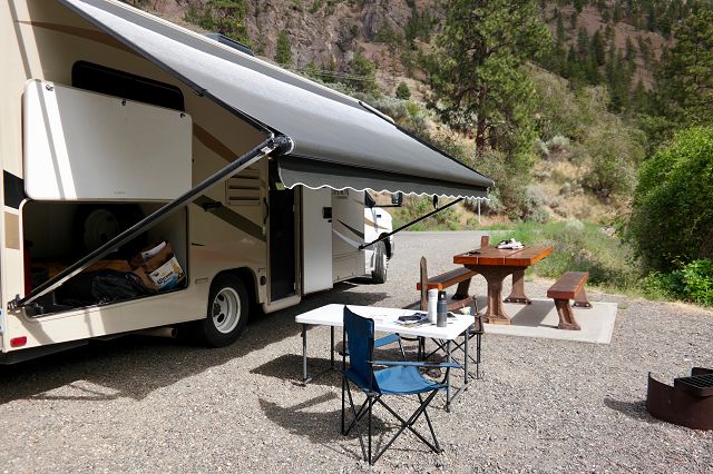 Leider müssen wir unseren tollen Stellplatz wieder verlassen a) weil er für nächste Nach reserviert ist und b) wir uns ja „nur“ auf der Rückfahrt befinden. Auf jeden Fall scheint wieder mal die Sonne und wir versuchen am Cariboo Highway den Chasme Provinzpark mit einer tiefen Schlucht aus der Eiszeit zu finden – leider gelingt uns dies nicht, wir waren aber immerhin, wie wir später in Clinton im Informationsbüro erfahren, sehr dicht dran. Es trübt sich etwas ein und wir sehen uns im kleinen Clinton noch ein paar alte Häuser an fahren dann über Cache Creek weiter in den Fraser Canyon. In Cache Creek gelingt uns mit telefonischer Instruktion durch Roadbear bei Dairy Queen Internet auch die Reparatur der Heizung.