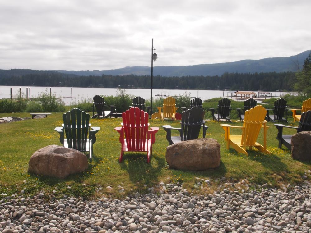 und so nutzen wir am Ufer die markanten Holzstühle, die es hier in großer Zahl und in bunten Farben gibt.