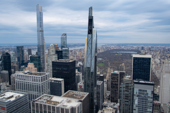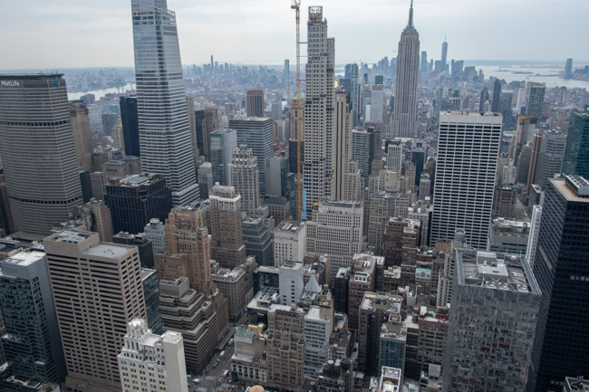 Wir fuhren wieder mit den Rädern nach Manhattan rüber, durch den Central Park weiter nach Midtown, wo wir zuerst im Rockefeller Center zur Aussichtsplattform Top of the Rock hochfuhren. Das Wetter war prima und die Sicht gut, sodass sich der doch recht hohe Preis gelohnt hat.