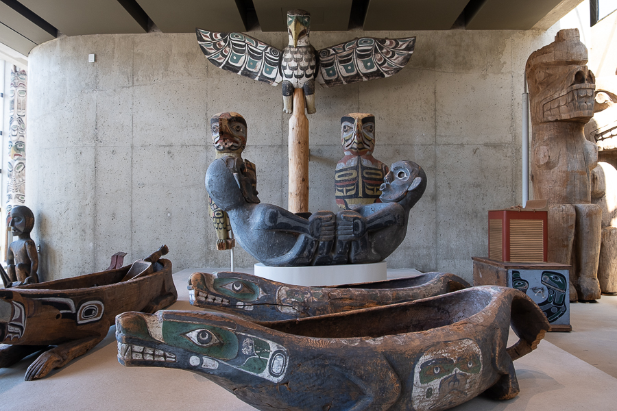 Am nächsten Tag fahren wir entlang mehrerer Strände bis zum Anthropolischen Museum. Dort gibt es unter anderem eine tolle Totempfahl Kollektion und viele Exponate aus der ganzen Welt. Wir halten uns hier mehrere Stunden auf, in denen wir nur eine Auswahl sehen können. Hier könnte man mehrere Tage verbringen. Draußen sind noch ein paar Häuser der indigenen Bevölkerung aus frührerer Zeit zu sehen und weitere Totempfähle.