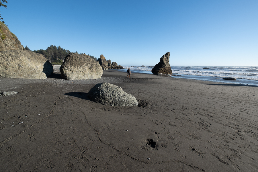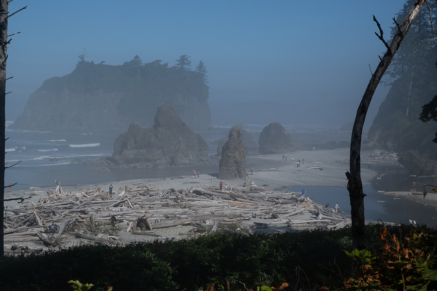 Dort fahren wir zuerst zum Ruby Beach, der im hinteren Bereich von tausenden Baumstämmen übersät ist. Wir übernachten an der Zufahrtsstraße zum Hoh Rain Forest, dann sind wir morgen ganz früh dort.