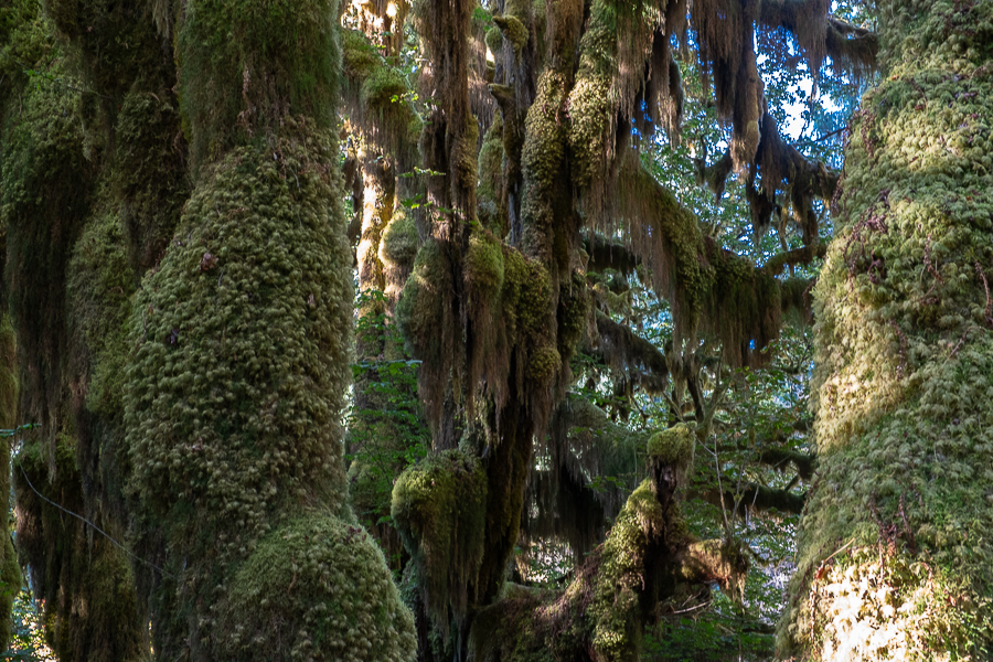 Natürlich erwandern wir sofort den berühmten Hall of Mosses Trail, der ist zwar kurz, aber wirklich wunderschön mit den vielen moosbewachsenen Bäumen. Wir freuen uns ja immer über Sonnenschein, nur hier passte er nicht so recht in die Szenerie. Viele andere Menschen sind um diese Zeit nicht unterwegs, aber als wir gegen 9 Uhr zurück sind, kommen uns doch recht viele entgegen.