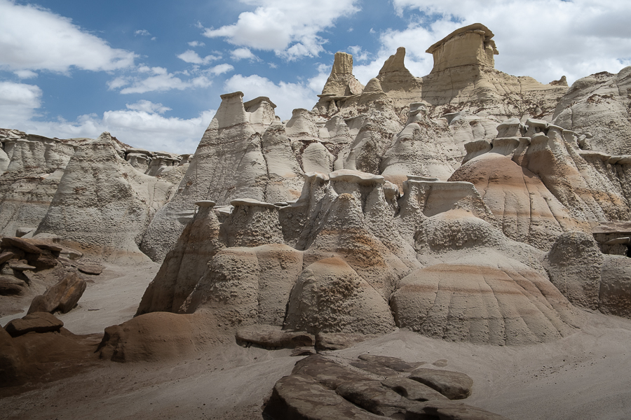 Am nächsten Morgen stößt der LKW erst einmal eine schwarze Rauchwolke aus, setzt sich dann aber zum Glück in Gang. Wir erreichen die Bistis erst am späten Nachmittag und starten gleich eine erste Wanderung in den nördlichen Teil. Es gibt keine markierten Wege, aber dank der Gaia-App finden wir den Weg durch die skurrile Welt der Hoodoos ganz gut. Hier könnte man sich leicht verirren, da ist so eine Wanderapp sehr hilfreich und berughigend. Andere Menschen treffen wir hier nicht.