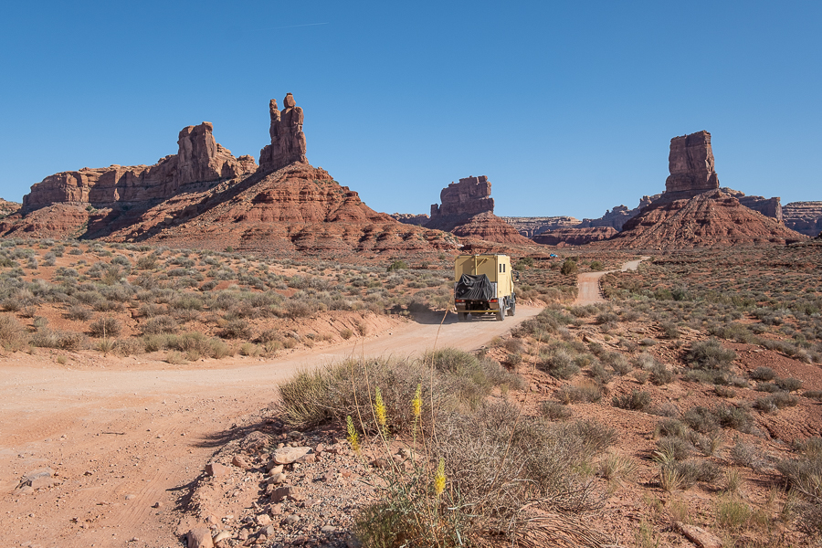 Morgens machen wir erst einmal eine Fotosession und lassen die Drohne fliegen. Da das Valley of Gods weder ein State Park noch ein Nationalpark ist, ist das zum Glück erlaubt. Durch das Tal führt eine recht gut befahrbare Piste, doch wir wundern uns, wie wenige Menschen sich hierhin verirren, Dabei ist es mindestens genauso schön wie das nicht weit entfernte Monument Valley, das von den Navajos touristisch vermarktet wird und entsprechend gut besucht ist. Dort gibt es allerdings einen Campingplatz und ein Hotels, im Valley of Gods ist nur pure Natur. Hoffentlich bleibt das noch lange so.