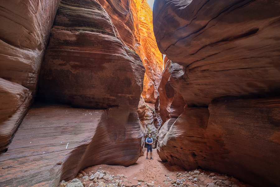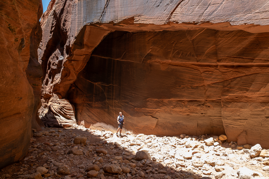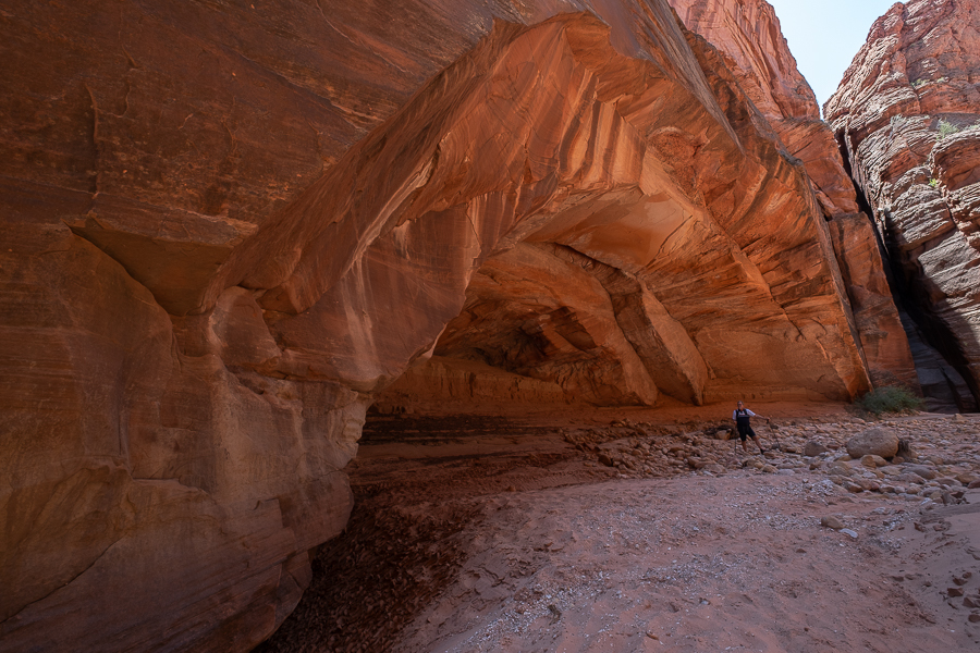 Wir verbringen fast den ganzen Tag in dem Canyon. Wir sind fast an der Leiter, als unsere Handy laut zu schreien anfangen und eine Warnung vor einer Flashflood aufploppt. Na toll. Es passiert aber nichts und wir sind sowieso wieder in dem breiteren Flussbett, wo wir sicher sind. Letzten Endes ist es aber nicht zu einer Sturzflut gekommen.