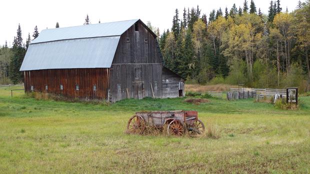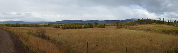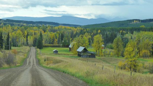 Nach der Eingabe des Tagesziels Vanderhoof führte uns das Navi nicht auf dem Vortagesweg zurück nach Smithers/Yellowhead Hwy., sondern über die Telkwa High Rd., eine unbefestigte aber gut befahrbare Straße, durch schönes und weites Farmland.