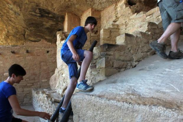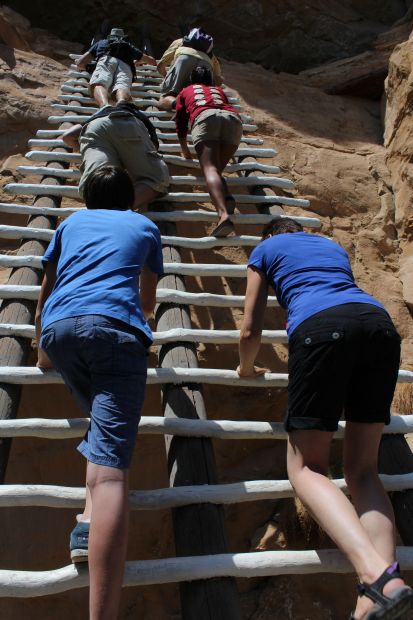 Die Balkony Tour dauerte 1 Stunde, und war relativ unspektakulär. Im Prinzip erklimmt man über eine große, breite Holzleiter einen Wohnbereich der Ureinwohner, wobei man teilweise auf allen Vieren kriechen muss. Dann erzählt der Ranger ausführlich über die Geschichte der Einwohner und die Gegend.