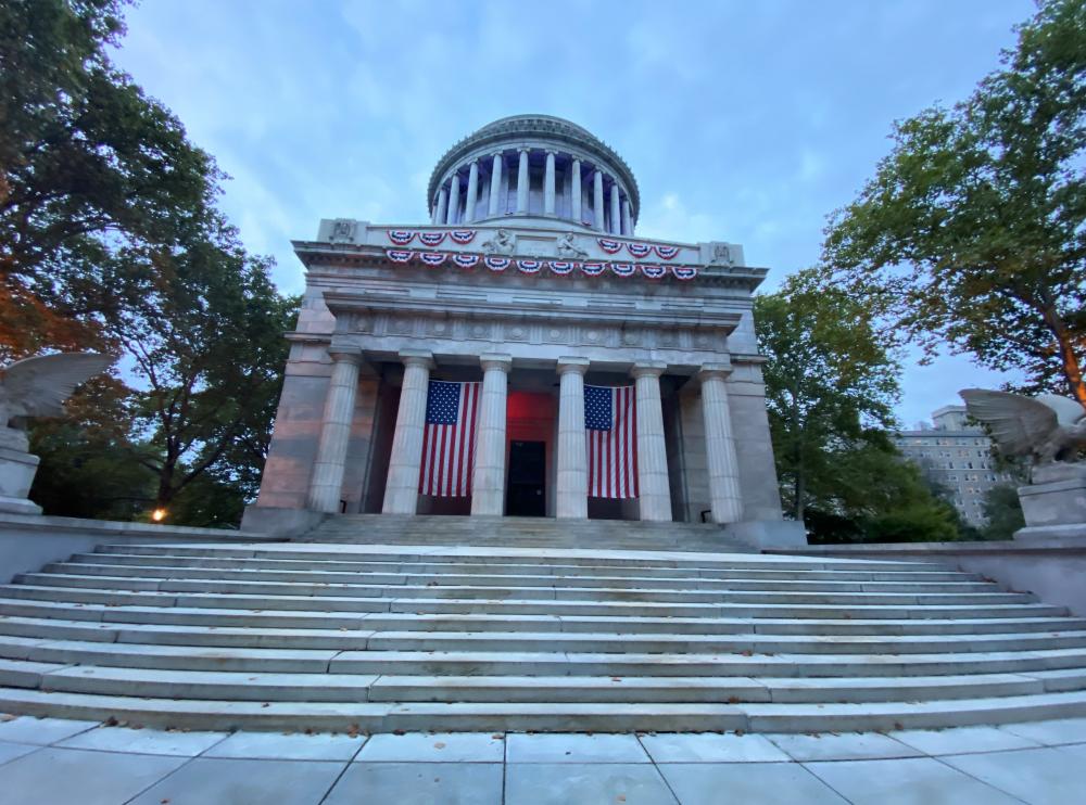 In der Ferne blitzt das Guggenheim Museum durch die Bäume, wir wollen jedoch in die entgegengesetzte Richtung zur Subway. Der Knirps kann mal wieder keinen Schritt mehr gehen, außer wir fahren nochmal zu dem tollen Spielplatz. Das geht jedoch nur mit der Vereinbarung, dass wir nach dem Spielplatz nochmal in die Subway steigen und wieder hinauf fahren bis zum General Grant National Memorial. Auf den Knirps ist verlass, gesagt, getan. Direkt beim General Grant Tomb ist zwar auch ein Spielplatz, der noch geschwind bespielt werden muss, bevor er wieder weitergehen kann, aber wir erreichen die Grabstätte noch vor der Dunkelheit. Leider natürlich schon lange nach den Öffnungszeiten, sonst hätten die beiden Herrschaften auch hier noch einen Junior Ranger Anstecker ergattern können. Mir reicht dieser herrliche Ausblick.