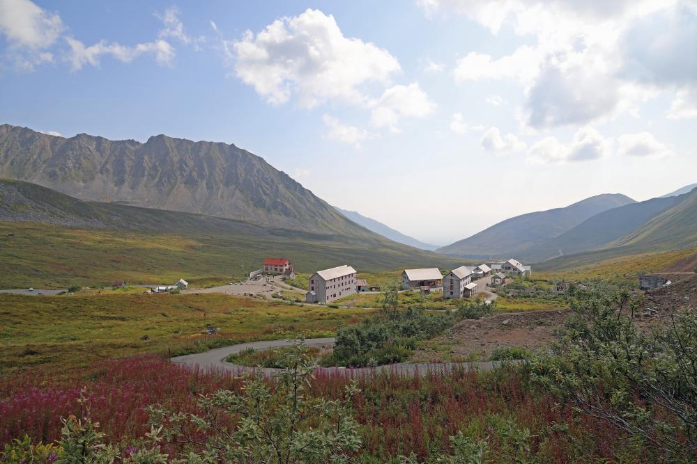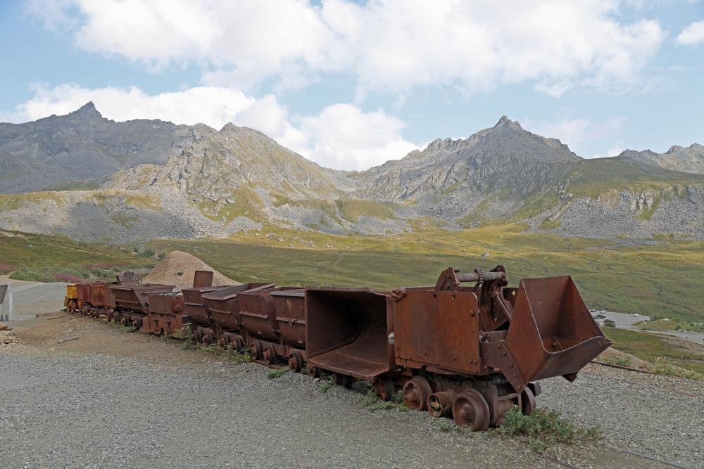 Bei schönem Wetter wanderten wir auf guten Wegen über das weitläufige Gelände, durch die verschiedenen restaurierten und verfallenen Gebäude der einstmals zweitgrössten Goldmine Alaskas. Es ließ sich erahnen, was für eine Knochenarbeit die Goldgewinnung in der abgelegenen Felsenlandschaft damals gewesen sein muss.