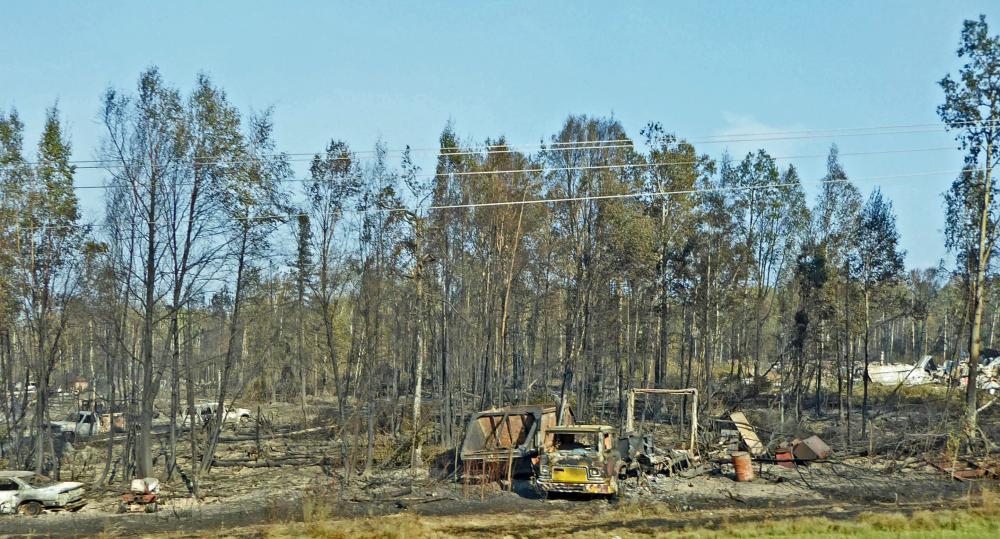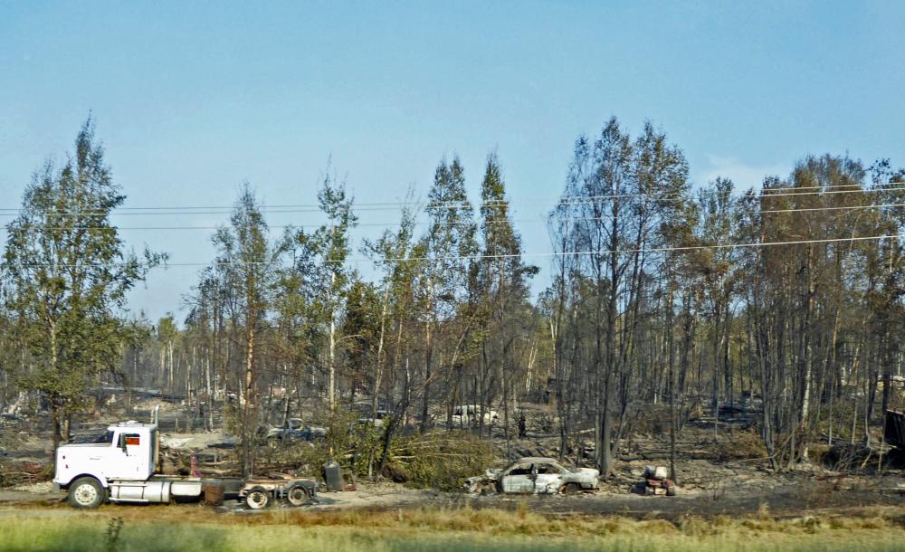 Auch bei unserem Versuch, auf dem Susitna Landing CG zu übernachten, bot sich uns eine seltsame Szenerie. Der CG war wegen des Feuers fluchtartig verlassen worden, die leeren Kühltruhen standen offen, es war niemand mehr da. Dies bestätigte uns auch ein Polizist. Er schilderte uns die spezielle Problematik der Alaska-Feuer: Durch die Klimaerwärmung löst sich der Permafrost unter der Vegetationsschicht auf. Die Bäume verlieren ihren Halt und fallen auf Stromleitungen. Diese brechen zusammen, entzünden das Buschwerk und die Grasnarbe und bewirken Flächenbrände. Das sei ein wiederkehrender Teufelskreis.
