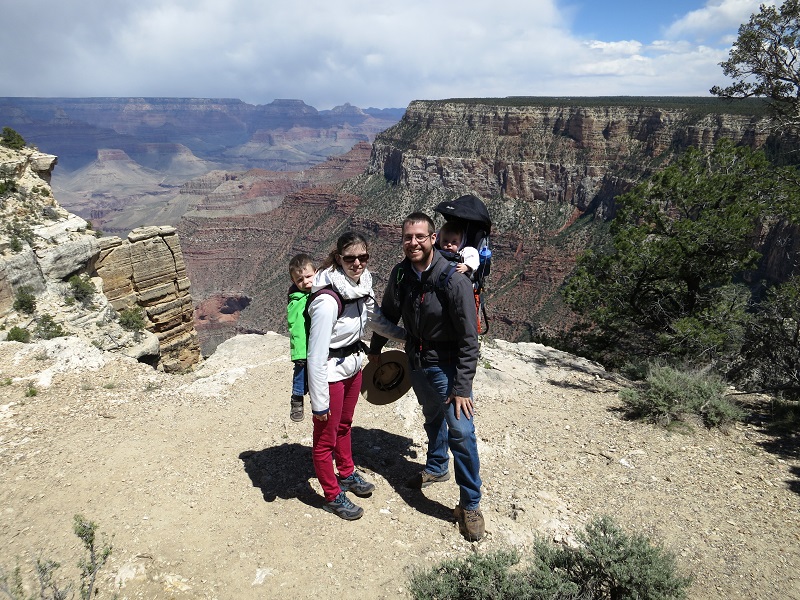 Da wir heute einige Aussichtspunkte zu Fuß erkunden wollen kommen beide Kids auf unsere Rücken. Mit dem Bus geht es zum Hermits Rest Routtransfer. Von dort machen wir uns zu Fuß auf den Weg.