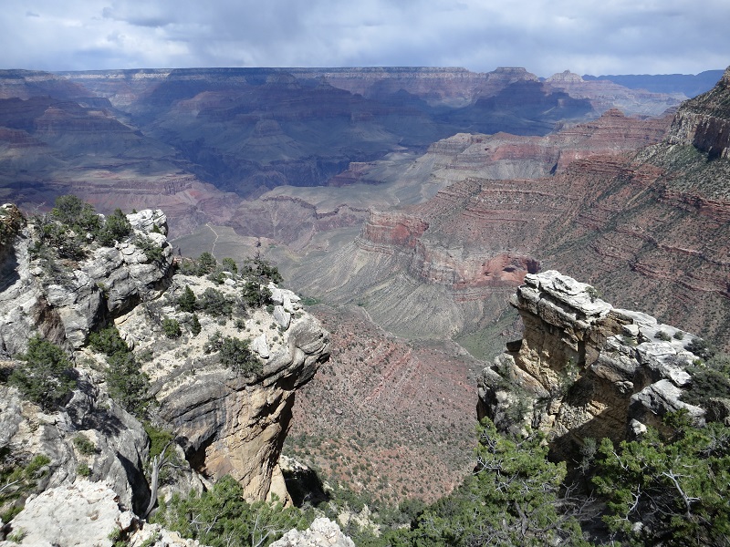 Wir können die Schluchten und Felsabhänge von dieser Seite aus richtig gut genießen. Wegen der Kids haben wir uns gegen eine geführte Tour in den Canyon hinein entschieden. Dies wäre einfach zu viel für sie geworden. Aber auch von der Süd-Kante kann man schon sehr viel sehen. Es ist faszinierend, wie grade manche Felswände sind und dennoch oben drauf Bäume wachsen können. Vielleicht könnt ihr einen kleinen Eindruck auf den Bildern bekommen.