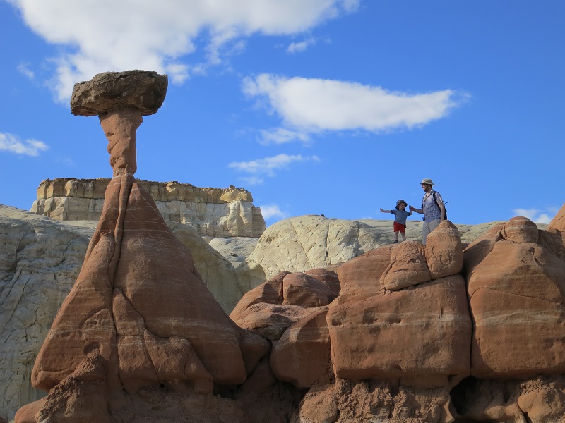 Mit dem Wohnmobil fahren wir weiter in Richtung Kanab. Zwischendurch halten wir bei den Paria Rimrocks und laufen den Trail zu den Hoodoos.