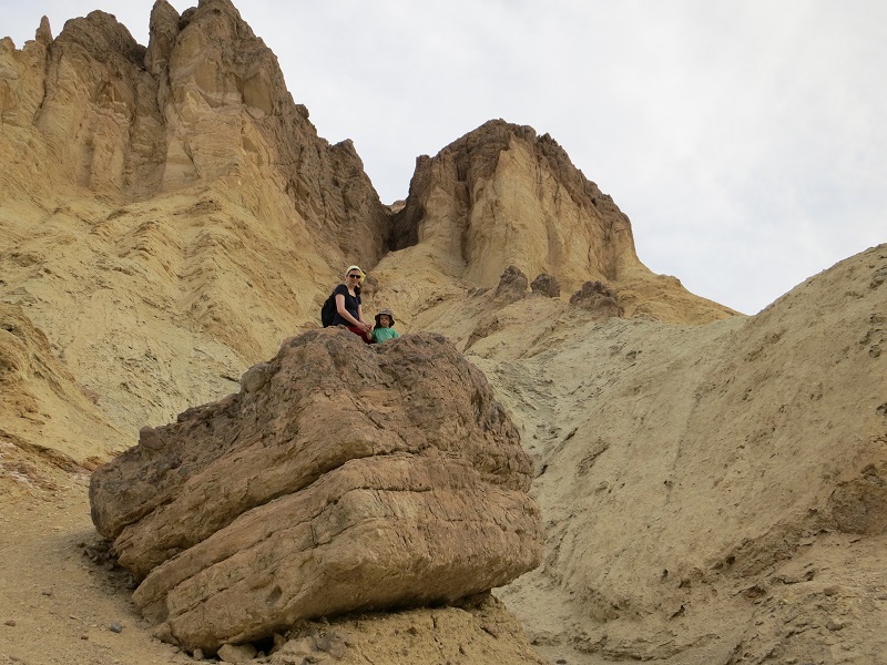 Relativ ausgeschlafen machen wir uns in den frühen Morgenstunden auf zum Golden Canyon. Mit einem Frühstücksbrot in der Hand erklimmen wir den nächsten Trail. Der Canyon ist riesig aber da mein (Anthea) Auge sehr stark zu Tränen an fängt, müssen wir uns bald auf den Rückweg machen. Vom Canyon sind wir dennoch sehr begeistert. Die Temperatur ist für uns angenehmer, da der Himmel leicht bewölkt ist.