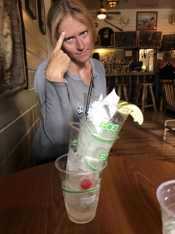 Am Visitorcenter angekommen, sehen wir neben der Kasse eine aktuelle Übersicht, wo es im Canyon überall Wasser gibt. Der Trinkbrunnen am Supei Tunnel ist in Betrieb, sehr gut. So müssen wir morgen nicht zu viel mitschleppen. Wir nehmen noch einige Postkarten mit und gönnen uns dann einen Drink in der Bar. Und nein, ich habe die nicht alle selbst getrunken...![]()