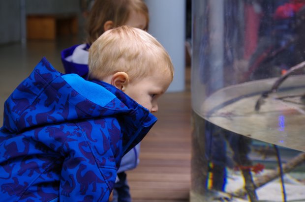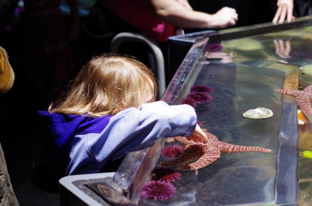 Über den Lincoln Blvd geht es teilweise wieder etwas bergab, die 25th Street wird dann aber wieder ordentlich hügelig. Am Golden Gate Park angekommen, beschließen wir, der California Academy of Science einen Besuch abzustatten. Hierfür war der Eintritt auch durch den City Pass inklusive und ich kann das Museum nur jeder Familie an Herz legen! Es gibt jede Menge tolle Ausstellungen, die sowohl Kinder als auch Eltern begeistern: Tolle Aquarien, inklusive Touch Tanks, in denen die Kinder Seeigel und Seesterne anfassen können, eine große Schmetterlingsanlage, ein Albino-Krokodil und einen sehr, sehr schönen Kleinkinder-Bereich, in dem sich die Kleinsten als Nachwuchswissenschaftler betätigen können. Hier eine kleine Bilderauswahl:
