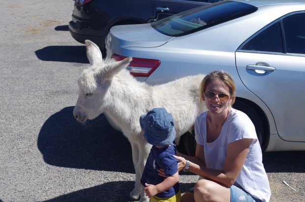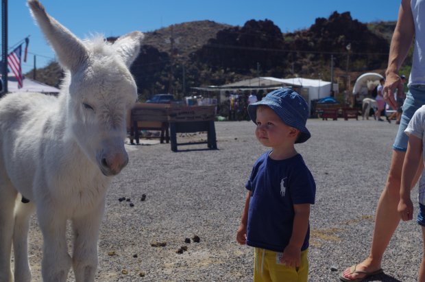 Wir kommen gut voran und nehmen den geplanten Abstecher über die Historic Route 66 nach Oatman, dem Eseldorf. Das ist für die Kinder wieder ein ganz toller Stopp. Wir bewundern ausgiebig die vielen Esel. Vor allem die Eselbabys, und das sind zum Teil wirklich noch richtige Babys, haben es den Kindern angetan.