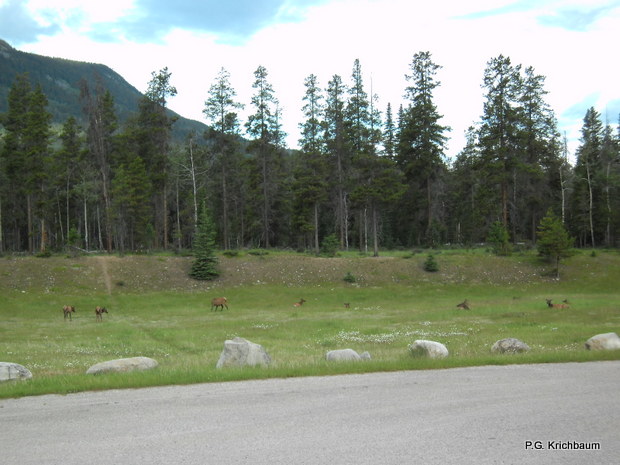 Zuerst sind wir nach Jasper zum Visitor Center gefahren um zu schauen, ob dort freies WLAN zur Verfügung steht. Das war der Fall, und ich habe eine gute Stunde mit dem Verschicken meiner Reiseberichte und Fotos verbracht. Alles wurde erledigt, E-Mails durchgelesen und beantwortet, und wir konnten Jasper in Richtung Westen verlassen.