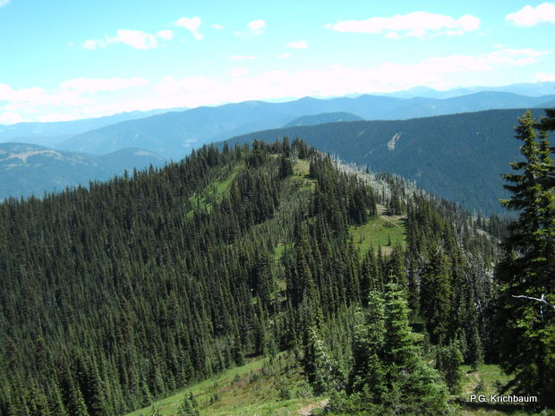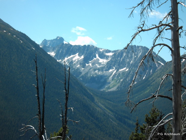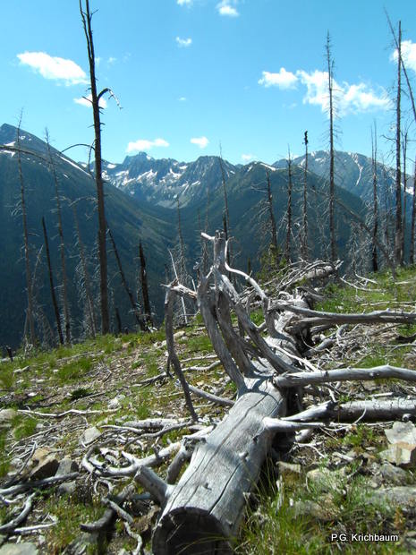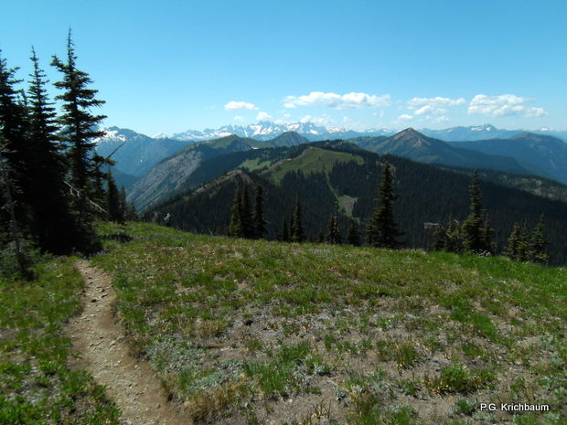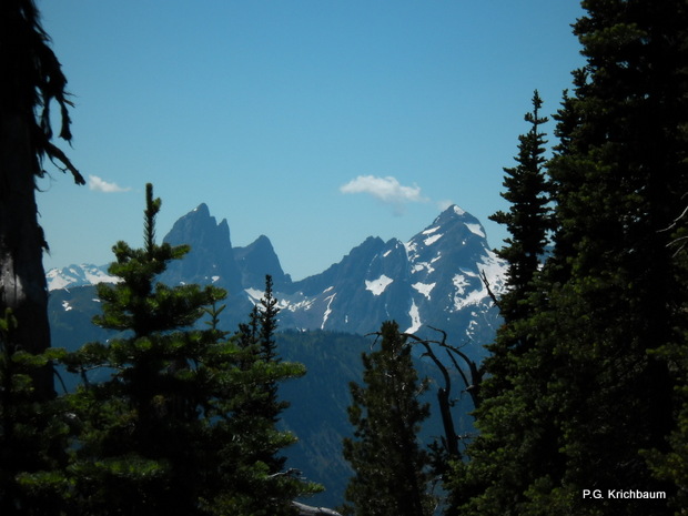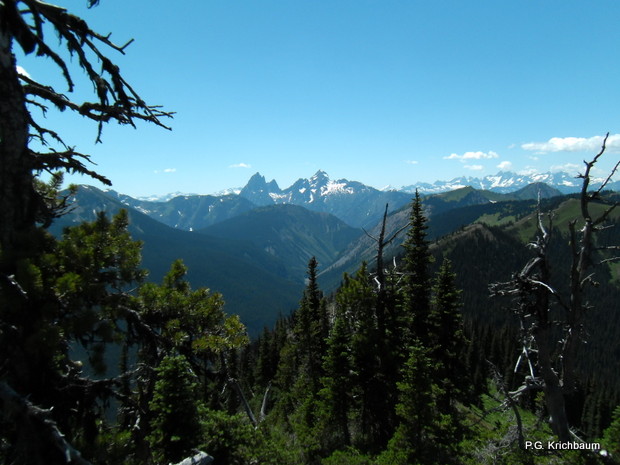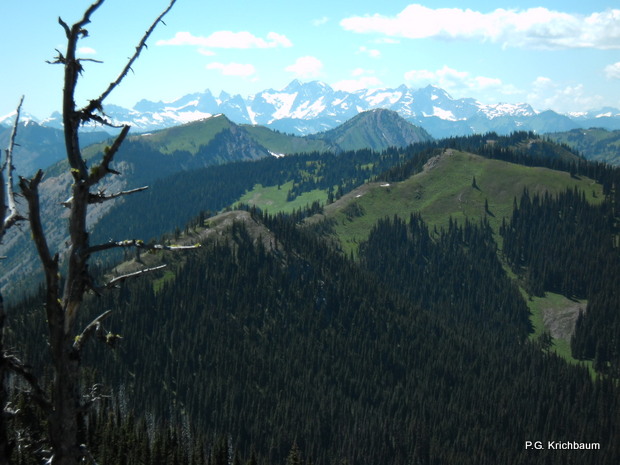 Nach einigen Km erreichten wir sodann die „baumlose Grenze“, und es wurde uns eine grandiose Aussicht für einige Kilometer des Weges geboten. Wir hatten die ganze „Skyline“ des North Cascades NP vor unseren Augen.
