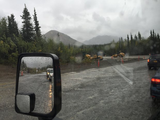 Über den Parks Highway ging es dann Richtung Süden. Der heutige Tag hätte auch einen brauchbaren Novembertag abgegeben. Es war kalt,regnete wie aus Kübeln. Eigentlich ein Tag für Couch, Plätzchen und Tee ….. ![]()