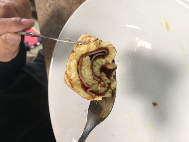 Als wir tanken mussten bin ich trotz Überdachung nass geworden. Nur gut das es in unserem fahrenden Zuhause warm und Trocken war und es nach Pancakes roch …….![]()