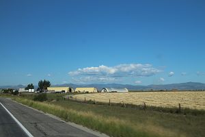 Wir verlassen die Gegend und fahren zunächst durch eine ausgedehnte Farmlandschaft. Hier wird vor allem Getreide angebaut. Diese großen Getreidekreise sehen schon beeindruckend aus. Und nun glauben wir auch erstmals zu verstehen, warum man hier überhaupt rund anbaut: um einen zentralen Anschluss herum fährt ein automatisches Bewässerungsystem immer im Kreis. Das kann man sich hier erlauben, bei so viel Land und Platz.