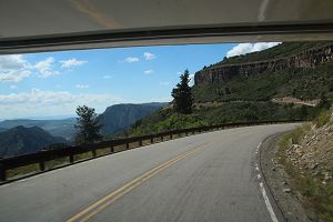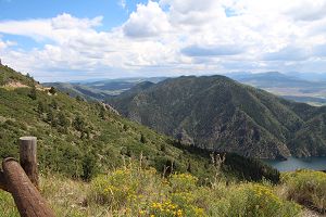 Wir steigen ein und fahren weiter. Der Black Canyon of the Gunnison ist heute das Ziel. Was nun folgt, ist gewiß nicht die Glanzleistung des Urlaubs, und es darf verbucht werden unter: auch die beste Planerin macht mal einen Fehler. Ganz erklären kann ich es mir noch immer nicht, aber nobody is perfect, nicht wahr? Wir fahren los, das TomTom sagt, rechts abbiegen nocheinmal über den See, der Große hinterm Steuer dagegen sagt, müssen wir nicht links? Und ich sage im Brustton der Überzeugung, paßt schon, vielleicht gehen die Straßen später wieder zusammen. Und wundere mich überhaupt nicht, dass der Canyon LINKS neben uns immer breiter und tiefer wird. Unser Weg schraubt sich immer höher in Serpentinen in die Berge, wunderschöne Ausblicke, aber zum Fahren etwas anstrengend.