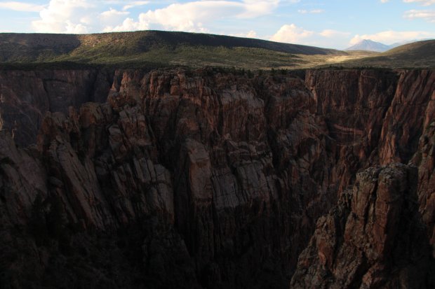 Also, nocheinmal weitere 75 Meilen um den Canyon herum fahren. Das geht glücklicherweise recht zügig, so dass sogar noch Zeit bleibt, kurz vor Ladenschluss in Montrose in einem Traxxas-Laden nach dem Problem mit dem Modell-Auto zu fragen. Der nette Typ meint, das SpeedControl-Teil sei kaputt, hat aber kein Ersatzteil und kann uns deshalb nicht helfen. Also fahren wir unverrichteter Dinge hoch in den Nationalpark. Vor allem wir Großen sind vom ersten Blick in den schwarzen Canyon richtig beeindruckt. Dieser Abstecher hat sich wirklich gelohnt. Dadurch dass der Canyon im Gegensatz zum Grand Canyon viel enger, gefühlt viel tiefer ist, steiler trifft es vielleicht besser, hat man das Gefühl, viel näher dran zu sein. Ich kann es nicht besser beschreiben, aber es ist "greifbarer" als am riesigen Grand Canyon.