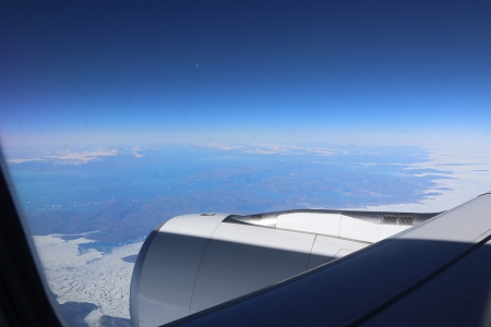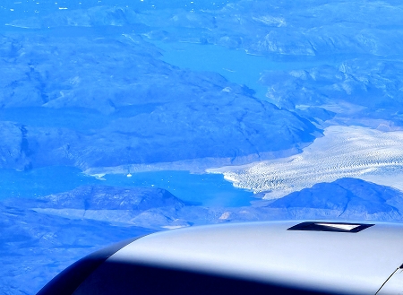Erst über Grönland reißt der wolkenverhangene Himmel auf. Jedesmal wieder bin ich so beeindruckt von dieser herrlichen Eislandschaft.