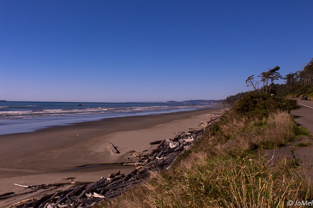 Danach geht`s die selbe Strecke wieder zurück bis zur #101 und dann Richtung Kalaloch wo wir heute übernachten werden. Unterwegs wollen wir uns den so hochgelobten Ruby Beach ansehen, aber keine Chance. Der Parkplatz ist total überfüllt und wir bekommen mit Ach und Krach noch den letzten Womo tauglichen Platz fast schon wieder vorne an der Haupstraße. Man merkt dass Sonntag Nachmittag ist. Na gut, für heute habe ich mein Pulver eh fast verschossen. Der Trail am Hoh Rain River war doch anstrengender als gedacht. Dann eben morgen auf der Rückfahrt, der Ausblick von hier oben sieht jedenfalls schon mal beeindruckend aus.