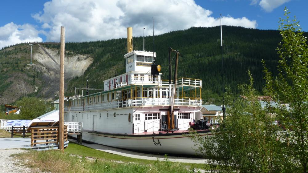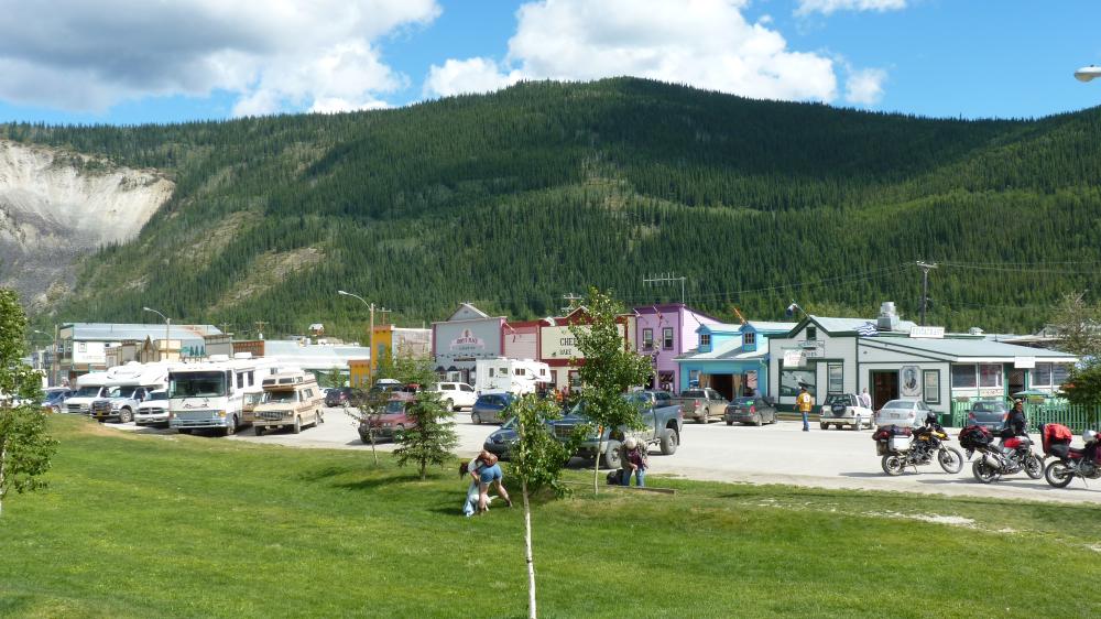 Später laufen wir wieder zu Fuß nach Dawson, nutzen das W-lan im Visitor Center ein wenig und gehen gegenüber ins VC der NWT. Die Idee auf den Dempster zu fahren verwerfen wir danach, denn auch da brennt es an mehreren Stellen. Bei einem Capucino schauen wir dem bunten Treiben auf der Front Street zu und machen uns am späten Nachmittag auf den Rückweg. Immer wieder interessant, was da für Typen bei sind.