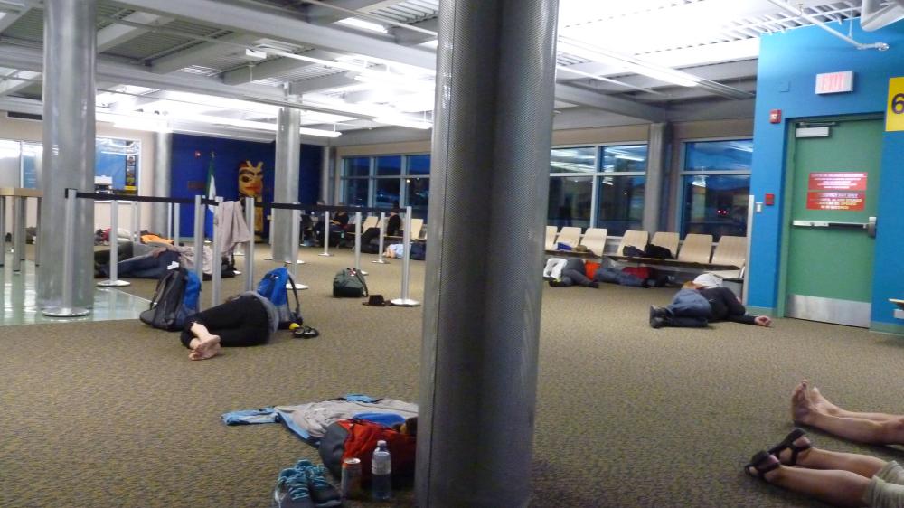 Es wurden weitere Voucher ausgegeben, man konnte jederzeit sogar Nachschub holen. Das kleine Restaurant machte wahrscheinlich den besten Umsatz aller Zeiten. Später wurde in der internationalen Ankunft sogar noch ein Buffett von Tim Hortons aufgebaut.
