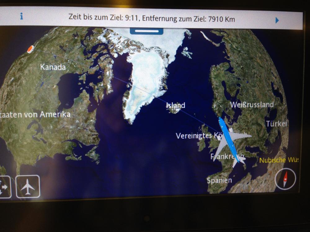 Wir fliegen mit KLM und verbringen die meiste Zeit des Fluges mit Filme schauen und essen. Das Essen im Flieger ist nicht so schlecht wie erwartet, wir bekommen unzählige kleine Päckchen mit Cracker, Käse, Pizza, Pasta, Eis, Salat und Nachtisch. Die Route geht von Amsterdam aus nördlich an Island vorbei über Grönland runter nach Vancouver. Da wir tagsüber fliegen, können wir die wunderschöne Aussicht über Grönlands Gletscher, Berge und endlose Schneefelder genießen. Auch beim Flug über die Rocky Mountains erhaschen wir einige Blicke durch die Wolkendecke auf die verschneiten Berggipfel.smiley