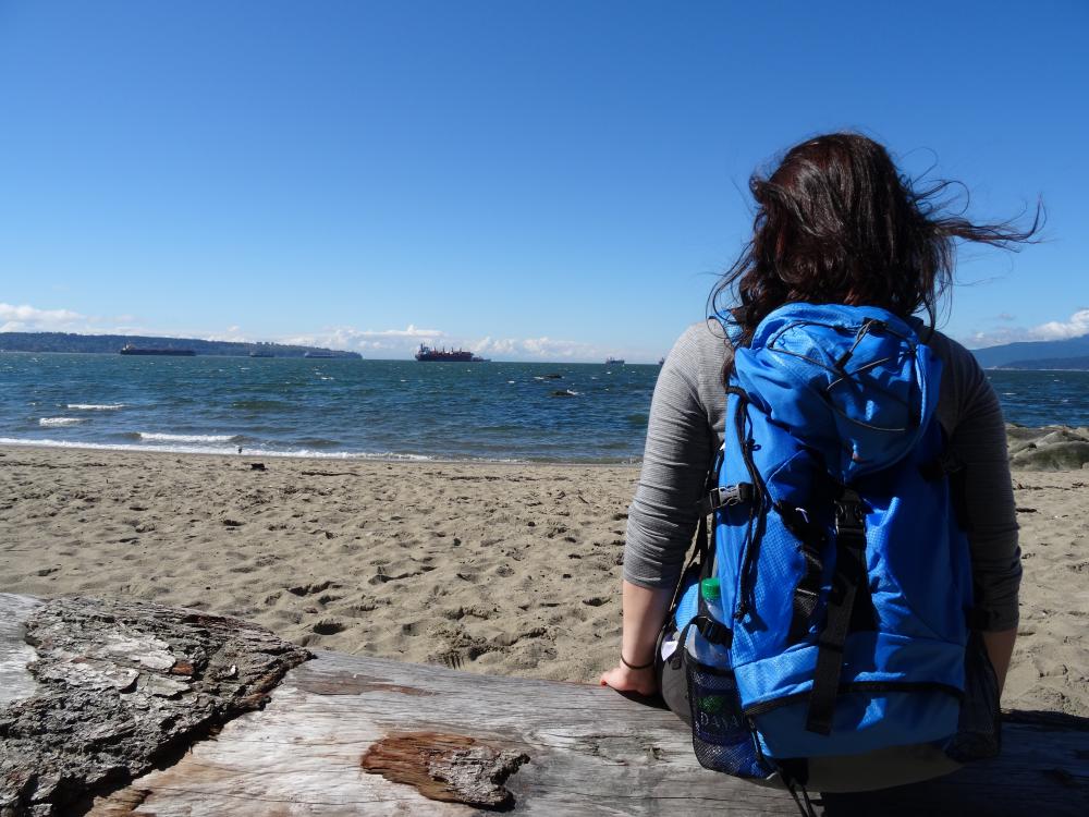 Dann geht’s zu Fuß Richtung Stanley Park. Der Park ist eine Halbinsel, die direkt an Downtown anschließt. Er ist bewaldet und von unzähligen kleinen Wegen durchzogen. Rings um die Halbinsel kann man auch entlang der Uferpromenade spazieren. Einmal herum sind knappe 9 km. Alles ist wirklich sehr schön angelegt und gepflegt, es gibt viele kleine Gartenanlagen, einige Seen und zwei Strände. Wir verbringen einige Stunden im Stanley Park, laufen an der Promenade entlang und quer über die Halbinsel bis zum Strand. Dort genießen wir auf einem der großen Baumstämme die Mittagssonne und ich finde meine ersten Muscheln.