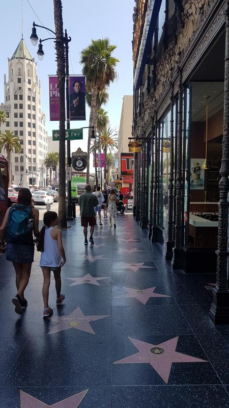 Wir finden mal wieder, dank meines pfiffigen Mannes, einen weitaus günstigeren Parkplatz vor dem Argyle House mit Parkuhr. 2 Stunden für 3 Dollar sind dann doch etwas Anderes. Wir laufen Richtung Hollywood Boulevard und werden bald fündig. Am Chinese Theatre türmen sich die Menschen, trotzdem gefällt uns der WOF an diesem Abschnitt am besten. Bewegt man sich von dort weg, egal in welche Richtung, wird es leider immer schmutziger, die Menschen seltsamer und unangehmer und der Geruch penetranter. Wir haben genug gesehen vom weltbekannten WOF und treten den Rückzug zum Auto an. Von Glanz und Glamour war hier leider nicht so viel zu sehen, trotzdem sind wir froh, es uns mal mit eigenen Augen angeschaut zu haben.