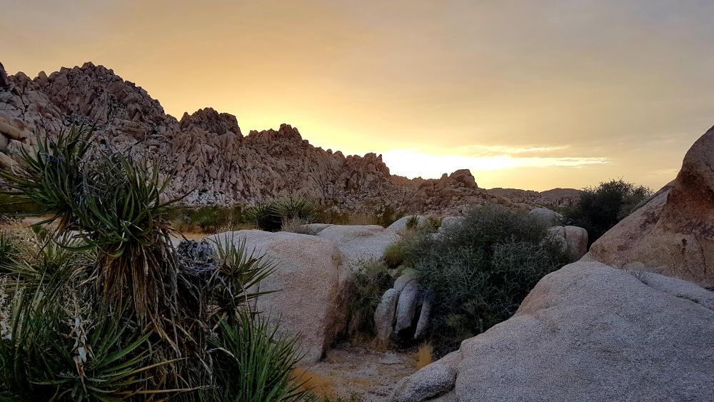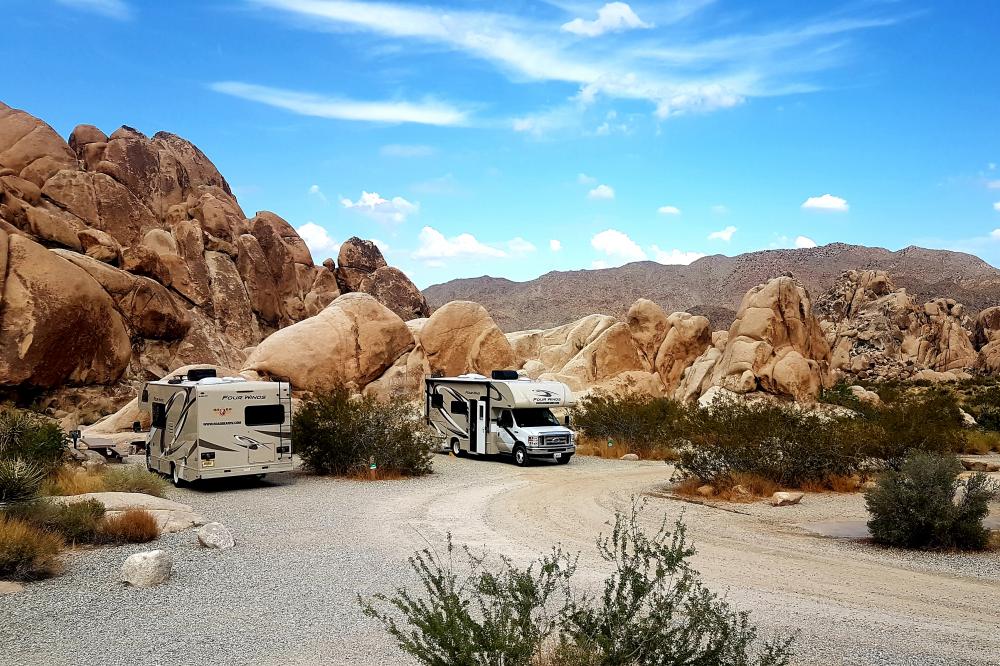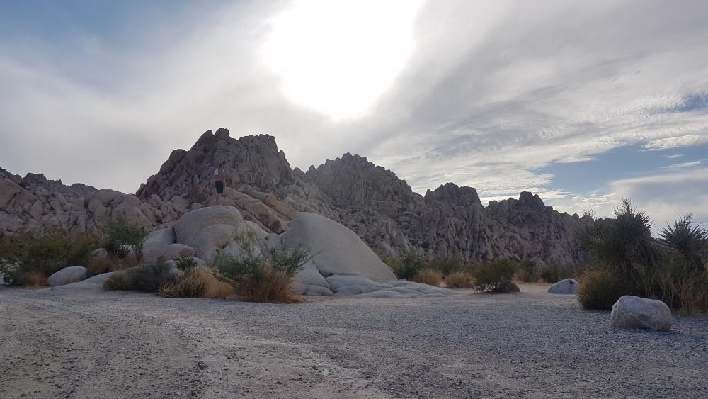 Die Fahrtzeit vergeht wie im Flug, die Landschaft ist jedoch vorerst unspektakulär. In Yucca Valley halten wir noch kurz bei Walgreens, um noch ein wenig Verbandsmaterial zu besorgen und holen gleich nebenan noch ein paar Dinge aus dem Walmart. Gegen 15 Uhr treffen wir am Eingang zum Indian Cove ein. Das Rangerhäuschen ist unbesetzt, wir finden keine Angaben zum Übernachtungspreis, stattdessen ein Campground Full und ein "Rattlesnake Area" Schild. Kurz bin ich verunsichert, aus dem Forum hier weiß ich ja aber, dass die Schilder nicht immer entfernt werden und es wahrscheinlich auch nur wenige "Bekloppte" wie uns gibt, die hier im Sommer übernachten