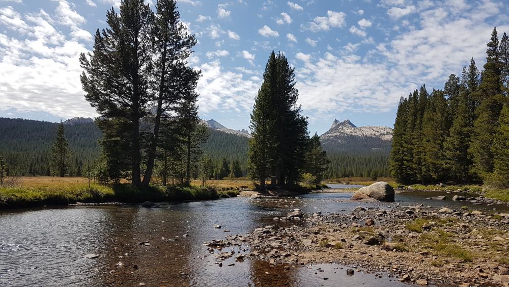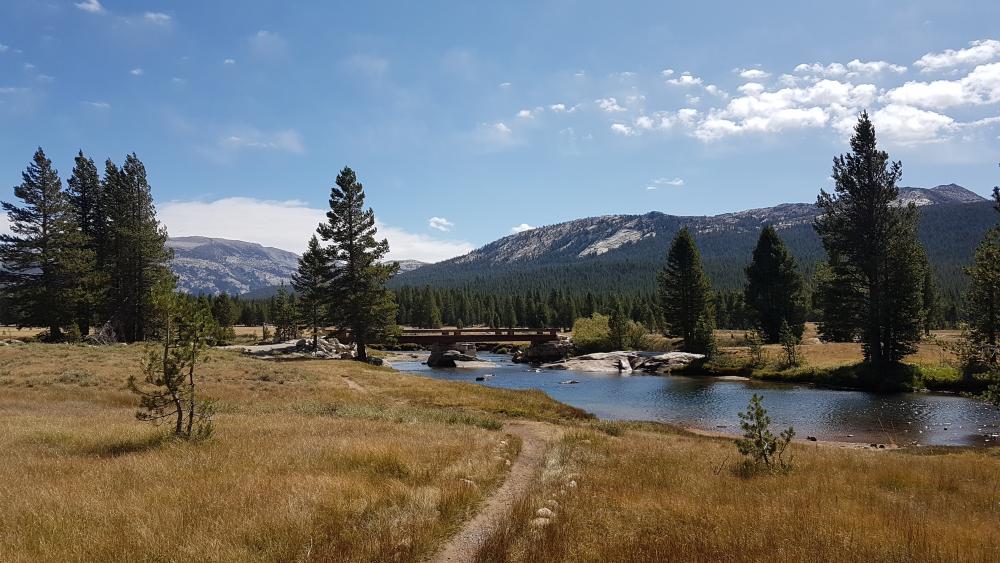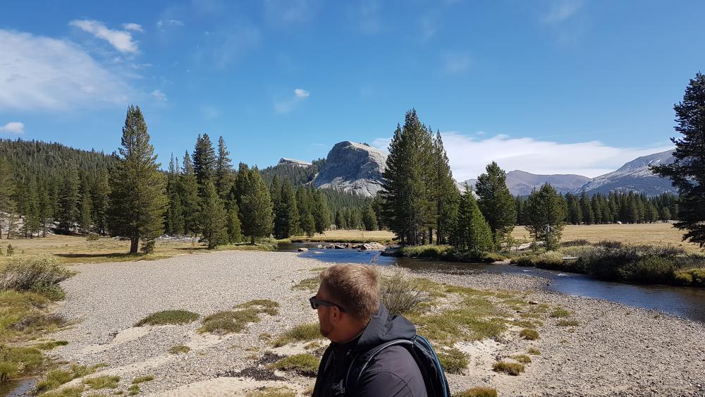 Gegen 12 treffen wir in Tuolumne Meadows ein. Wir finden einen guten Parkplatz am VC und laufen einfach los. Welch schönes Fleckchen Erde! Ich finde gefühlt 1000 Fotomotive, es ist so schön hier smiley Nachdem ich "Der große Trip" gelesen hatte, wollte ich unbedingt ein Stück des Pacific Crest Trails gehen, der durch Tuolumne Meadows führt. Wir schlagen den Weg über die Footbridge Richtung Parsons Memorial Lodge ein. Im Nachhinein gesehen, hat uns dieses Fleckchen Erde mehr begeistert als das, was noch kam.