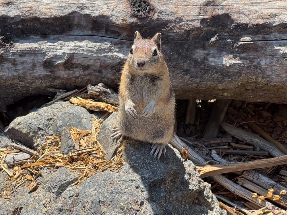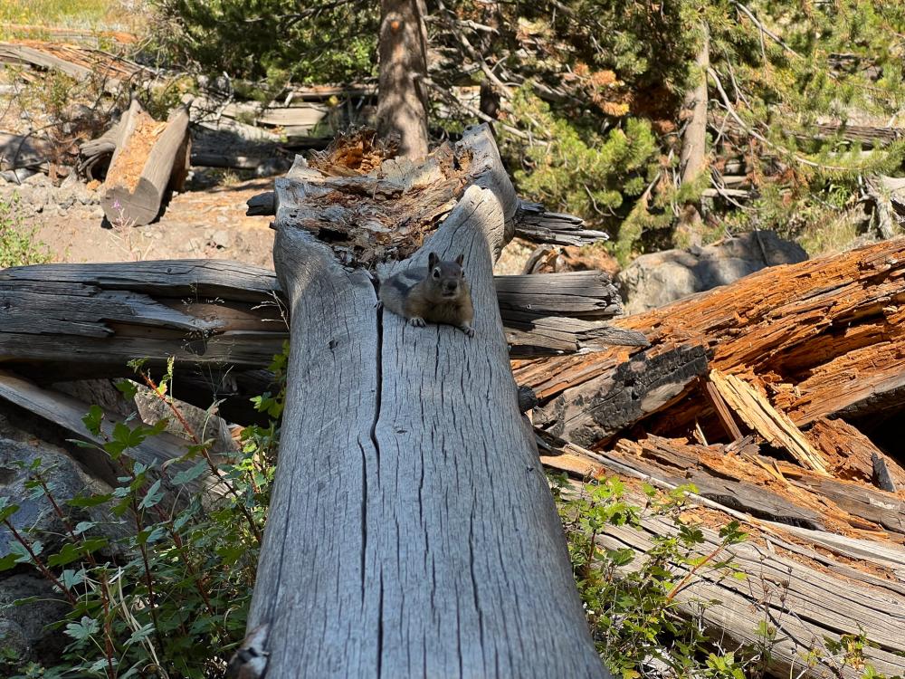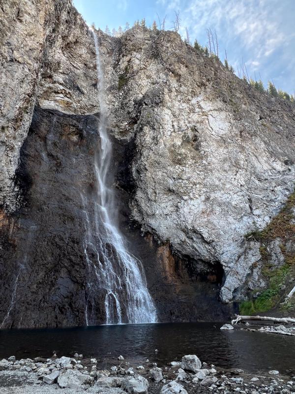 Wir wandern weiter zu den Fairy Falls. Der Weg zieht sich etwas, vor allem der erste Teil nach dem Abzweig von der Grand Prismatic. Am Wasserfall packen wir unser Picknick aus. Das müssen wir dann aber gegen sehr aufdringliche Chipmunks verteidigen.