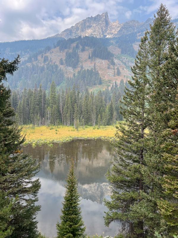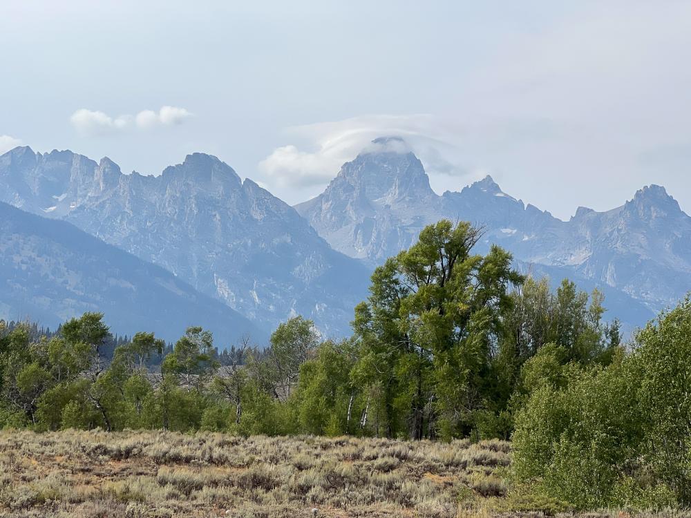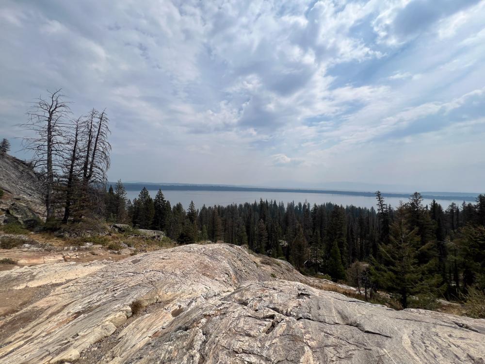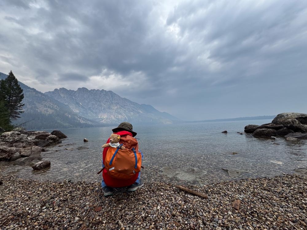 Der Wecker klingelt mal wieder um 7 Uhr. Es dauert heute etwas, bis alle in den Klamotten stecken. Wir fahren zum Jenny Lake Parkplatz. Hier ist schon ordentlich was los, aber wir finden problemlos noch ein Plätzchen. Die Teton Range versteckt sich heute Morgen komplett im Dunst. Dieser Dunst ist wohl Rauch von Feuern in der Nähe, der hier leider ins Tal sinkt. Irgendwie riecht es auch leicht nach Rauch.