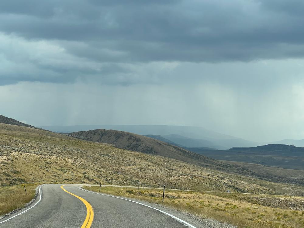 Wir schlafen bis kurz vor 8 Uhr. Draußen lässt sich immer mal die Sonne blicken, es ist aber noch recht frisch. Nach ein paar Videotelefonaten mit der Heimat dumpen wir und fahren zur Tankstelle. Dann starten wir Richtung Süden. Nach ca 30 Minuten Fahrt halten wir in Farson beim örtlichen Kramladen. Hier soll es leckeres Eis geben. Das Eis ist recht lecker, wir fanden das im Yellowstone aber besser. Wir kaufen noch Honig und Marmelade und setzen unsere Fahrt fort. Es geht über einen teilweise sehr holprigen Highway nach Green River und weiter über einen Scenic Byway Richtung Utah.