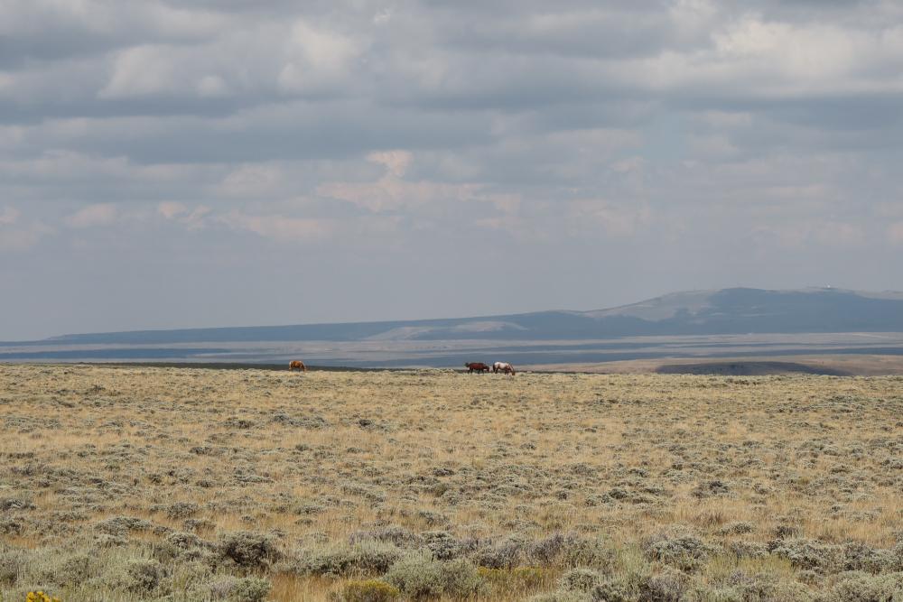 Unterwegs sehen wir Pronghorns und Wildpferde. An einem Aussichtspunkt halten wir fürs Picknick. Die Sonne scheint, es ist aber recht windig.