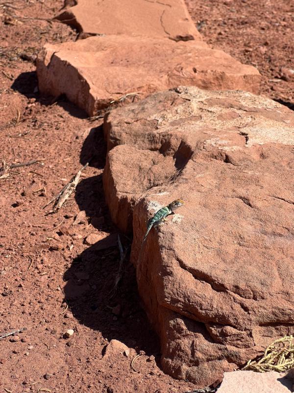 Ein Peregrine Falcon landet direkt neben uns auf einem Baum. Er ist sehr schnell, ich schaffe nur ein Foto. Auch einige bunte Lizards, ich glaube es sind Collared Lizards können wir entdecken.