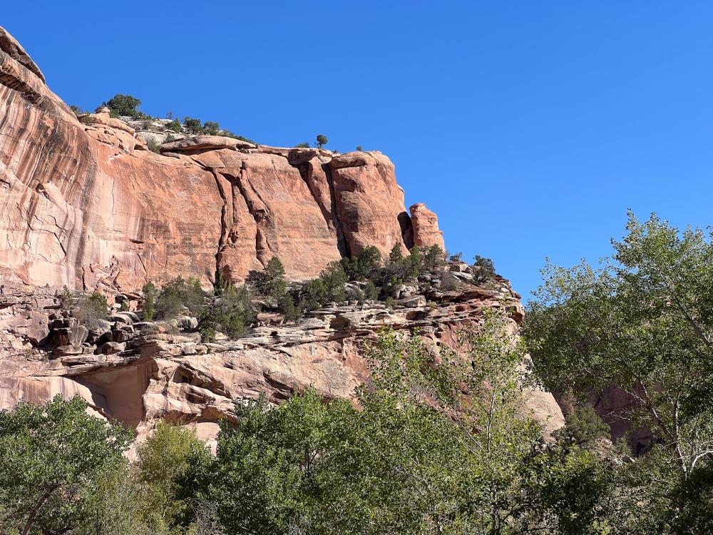 Im Anschluss laufen wir den Canyon Rim Trail gemütlich zum WoMo zurück. Dabei haben wir tolle Ausblicke auf die schönen Cliffs und in den Canyon.
