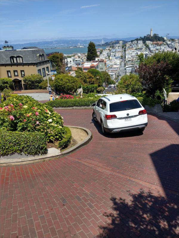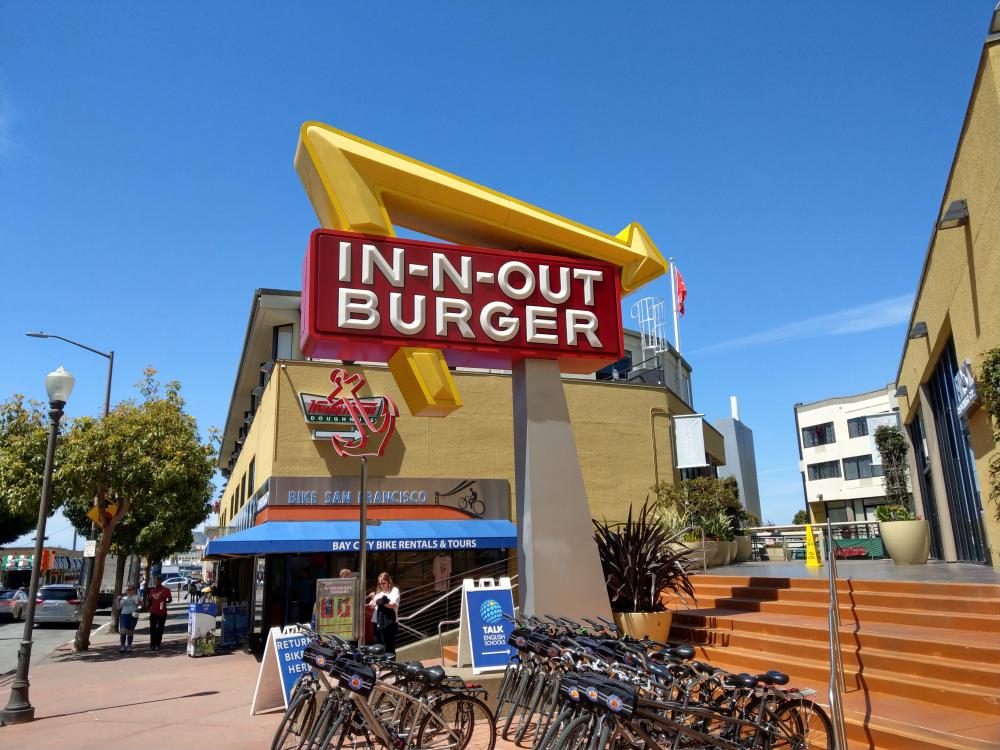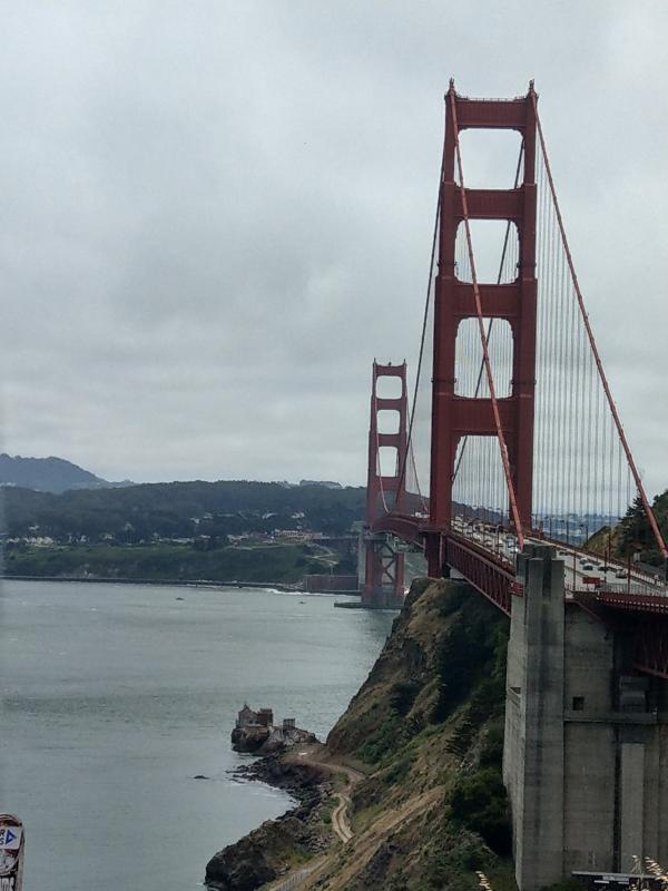 Leider schien er mit dem falschen Fuß aufgestanden zu sein und war wirklich knatschig..... So hatten wir bald keine Lust mehr und machten uns auf dem Weg zur Hop on Hop Off station um zum Vista Point zu fahren um die Golden Gate Bridges endlich auf Fotos einzufangen. Die Busfahrt auf dem Oberdeck machte ihm so viel Spaß, dass Finn plötzlich bester Laune war. Wir machten viele Fotos, wenn auch ohne blauen Himmel und dann gings weiter zur Lombard Street. Wir mussten noch ein gutes Stück bergauf laufen. Aber auch das machte Finn plötzlich gut gelaunt mit. Mit viel Energie und einem nicht enden wollenden Redeschwall von seiner Seite aus, kamen wir dann endlich an unserem Ziel an. Der hatte dann auch eine Meile später am In-out-Burger an der Fishermans Wharft noch kein Ende gefunden. Keine Ahnung, wie er da noch Zeit gefunden hat, die Pommes in den Mund zu schieben.